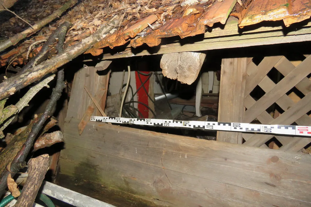 Nem elégedett meg zsákmányával, ezért az udvaron álló fészer deszkafalát is megbontotta Fotó: Police