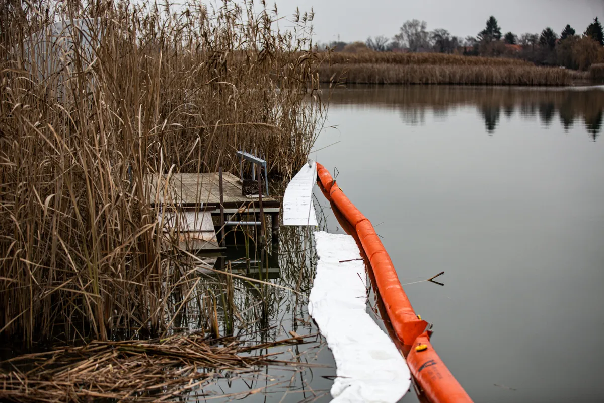 A szakemberek 120-150 folyóméter felfújható merülőfallal határoltak el egy körülbelül 2000 négyzetméternyi szennyezett területet.