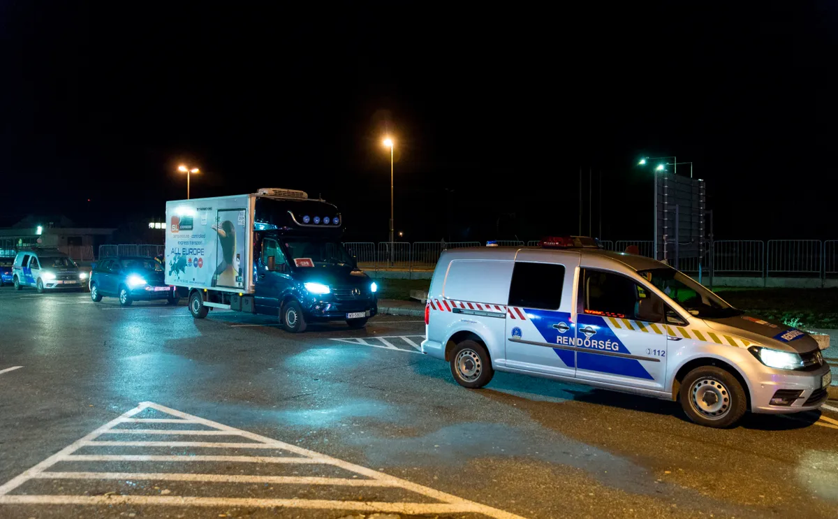 A hegyeshalmi átkelőről rendőri biztosítás mellett elsőként a Dél-Pesti Centrumkórházba szállítják a vakcinákat.