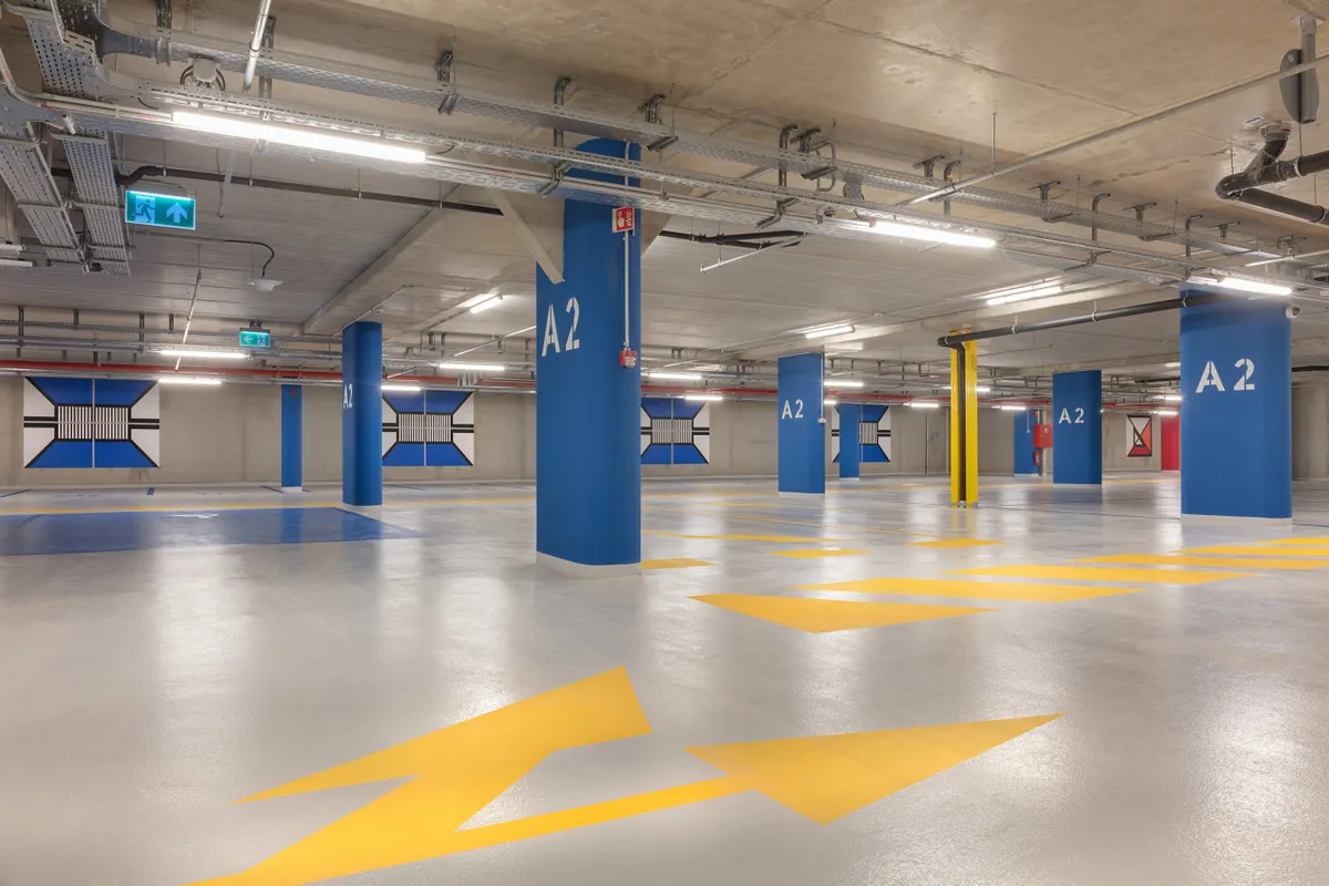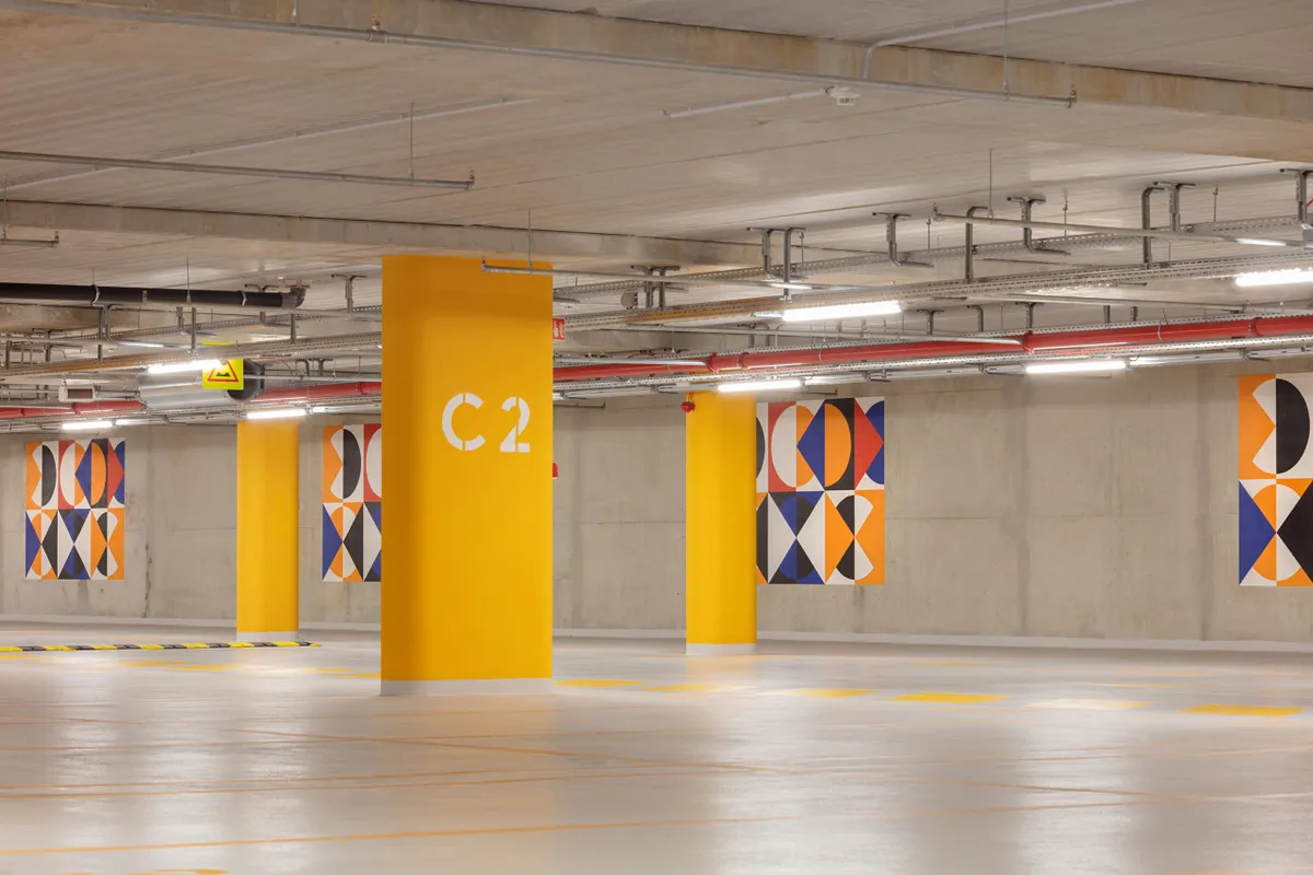 Egész Európában egyedülálló különlegesség, hogy a mélygarázs belső terei a nemzeti képtár gyűjteményéből 12 kiemelkedő magyar mester egy-egy remekművét idézik meg, Moholy-Nagy Lászlótól Keserü Ilonán, Maurer Dórán és Bak Imrén át Victor Vasarelyig