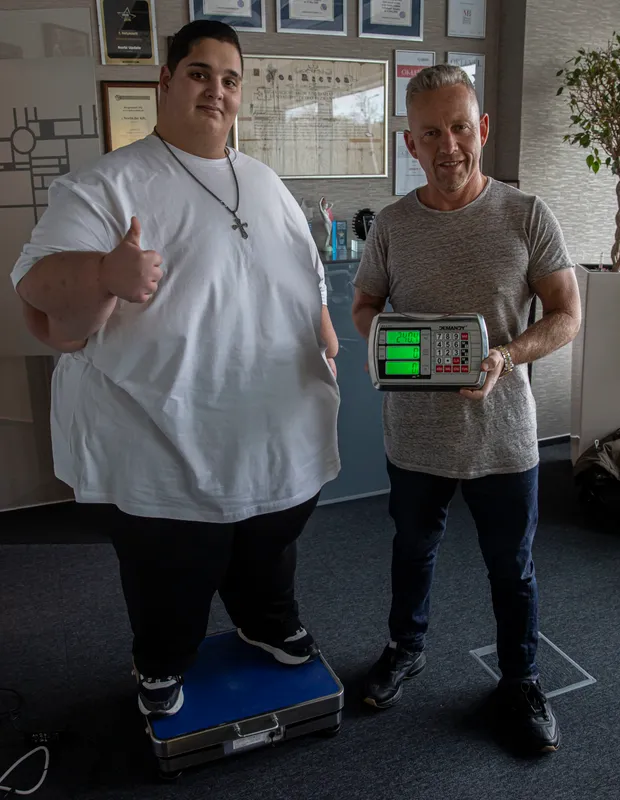 Az immár 18 éves fiatal a program elején kiakasztotta a mérleget, vagyis több mint 310 kilogrammot nyomot, mára azonban 240,8-at mutat a kijelző! Ami azt jelenti, jócskán több mint 70 kilót adott le nyár óta Norbi segítségének és menüjének köszönhetően.