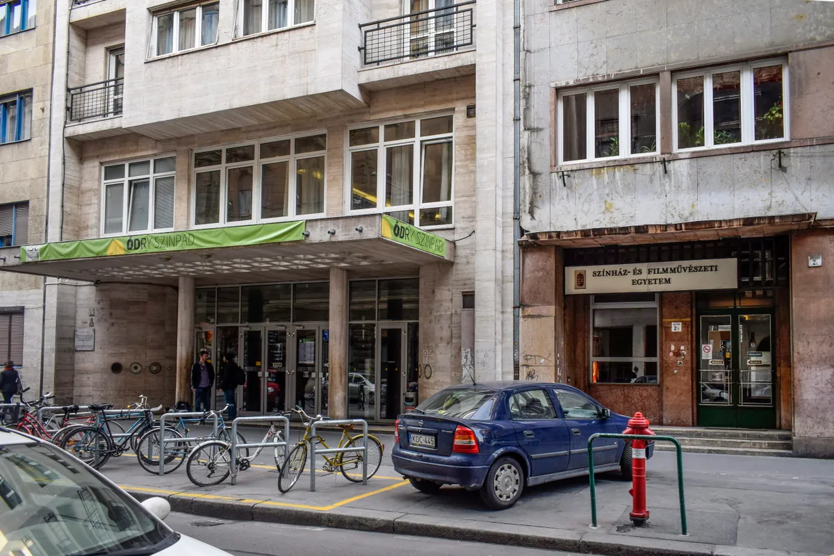 Az Ódry Színpad és a Színház- és Filmmûvészeti Egyetem bejáratai a VIII. kerület Vas utca 2c-ben.