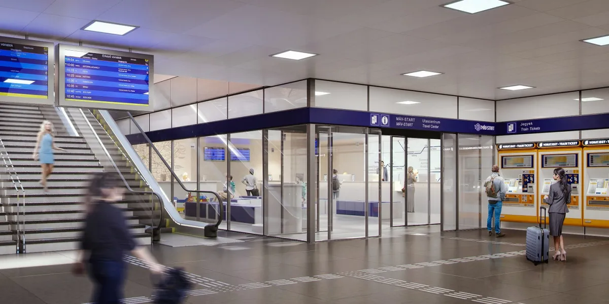 Az akadálymentesített utascentrum a peronszint alatt, a jelenlegi belföldi pénztárak és a pénztárak előtti terület teljes átépítésével valósul meg több mint 1542 négyzetméteren. A 200-250 négyzetméteres ügyféltérben 9 új pénztári és 2 új ügyfélszolgálati pultot alakít ki a vasúttársaság, amelyek közül az egyik mozgássérült munkavállalók számára lesz kialakítva. A belföldi és nemzetközi menetjegy-értékesítésen túl az utascentrum területén működik majd az információs és az ügyfélszolgálati iroda, és egy szolgáltatásértékesítő iroda is az utasok rendelkezésére áll, ahol a csoportos utazásokkal kapcsolatos igényeket lehet intézni. A közlekedési, várakozási terek, a gyereksarok és a biztonsági őr pultja is az utascentrumban kap helyet.
