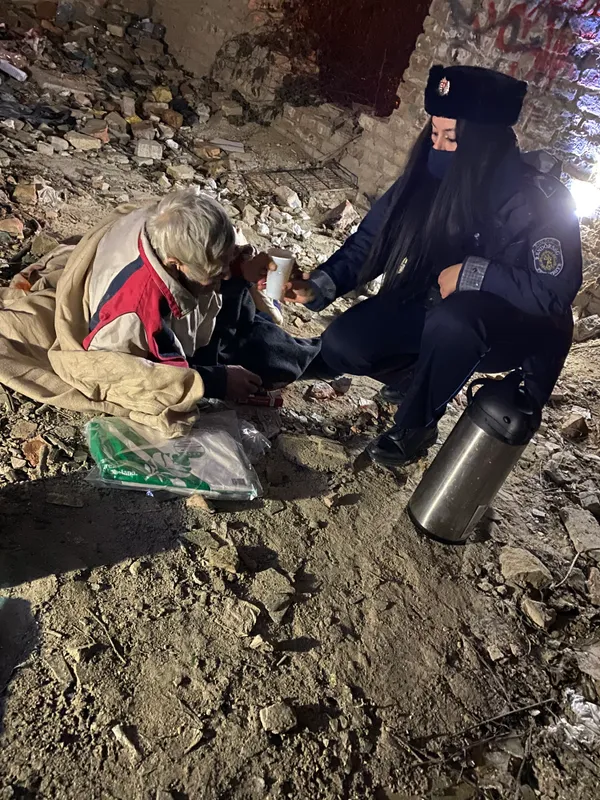 A rendőrök, míg az orvosi segítségre vártak, pokróccal betakargatták, meleg teával megitatták és vigyáztak a férfira, akit a mentők végül kórházba vittek.