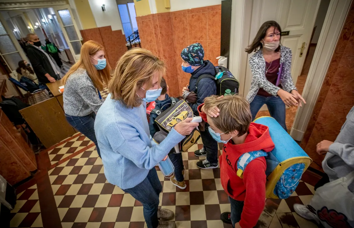 Egyelőre digitális oktatás van a középiskolákban, de az általános iskolákban jelenléti oktatás folyik. Rendszeresen tesztelik a tanárokat, hőmérőznek, a nagyobb intézmények pedig hőkaput kaptak. Mindez megnyugtatja a szülőket, ám felmerült egy másik probléma.