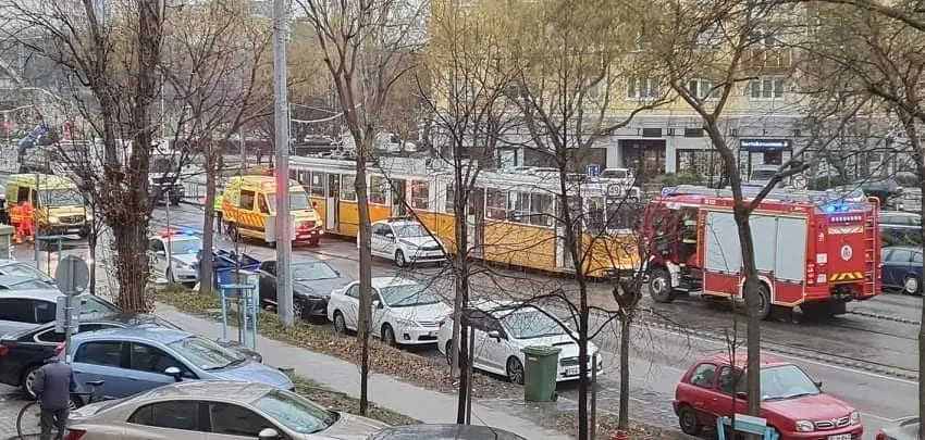 Egy autó ütközött a villamos oldalának a Bartók Béla út és a Tétényi köz találkozásánál, az érintett szakaszon egyelőre nem járnak a villamosok.