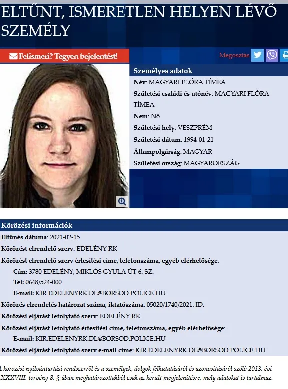 Az Edelény-Miskolc-Eger útvonalon utazott távolsági busszal, menet közben azonban nyoma veszett. Senki sem látta azóta, és a telefonja is ki van kapcsolva. Flórát már a rendőrség is keresi, és az interneten is több százan osztották meg a kereső posztot. Így most már rengetegen kutatnak az eltűnt edelényi lány után.