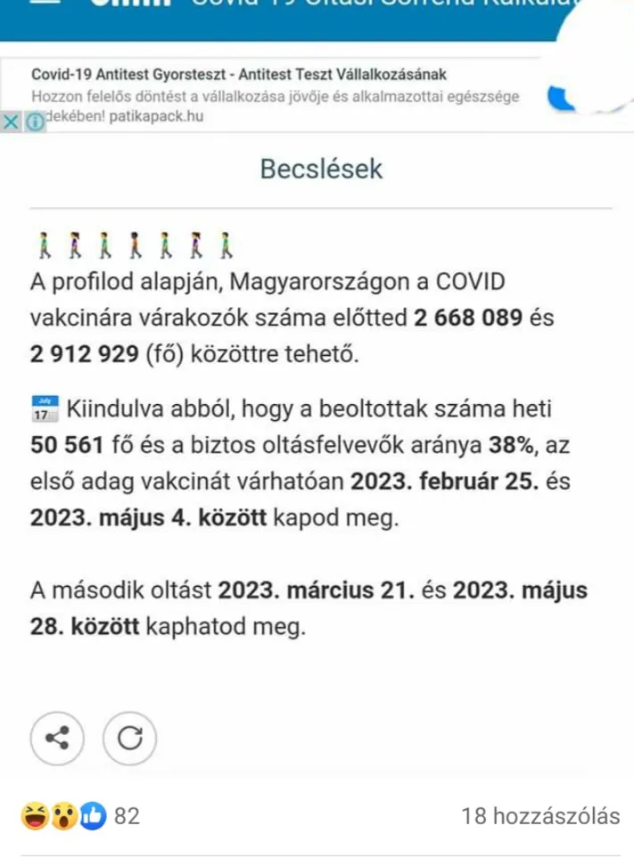 Kíváncsiságból a Ripost munkatársai is kitöltötték, és ledöbbentünk: a program szerint valaki 2022 őszén, mások csak 2023 tavaszán fogják megkapni az oltásukat. De rajtunk kívül még sokan hasonló eredményről számoltak be, ami már önmagában is gyanús, hiszen ha mindenkit leghamarabb 1,5 év múlva oltanak csak be, akkor most kik kapják éppen a vakcinát?