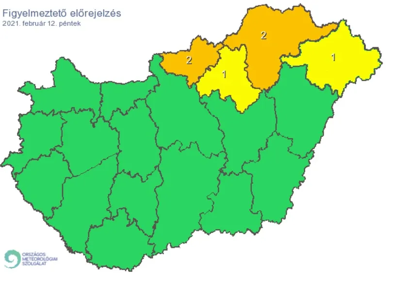 Első fokú figyelmeztetést adtak ki hófúvás miatt Szabolcs-Szatmár-Bereg, Heves és Borsod-Abaúj-Zemplén megyében. Még másodfokú riasztás van érvényben az extrém hideg miatt Nógrád és Borsod-Abaúj-Zemplén megyékben.