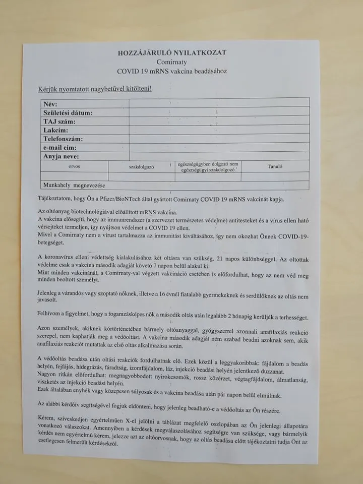 Elindult a tömeges oltás, így érdemes mindenkinek tájékozódni, hogy hogyan is zajlik pontosan. A Ripost megszerezte azt a beleegyező nyilatkozatot, amit ki kell tölteni előtte.