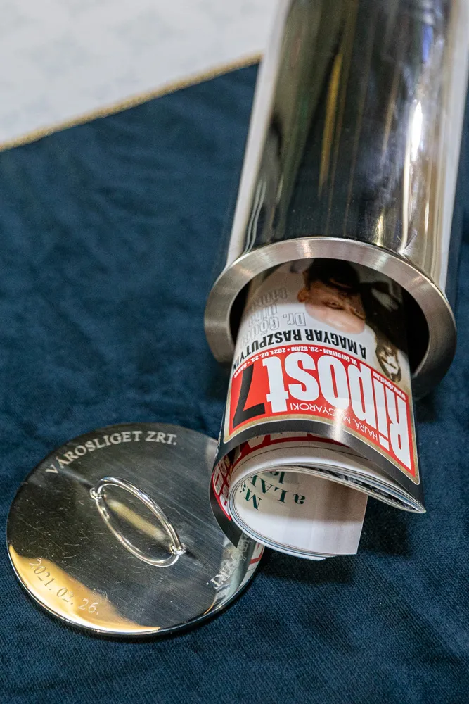 Az időkapszula egész addig pihen a betonteknőben, amíg a távoli jövőben komoly változásokat nem hajtanak végre az épületen a szakemberek.