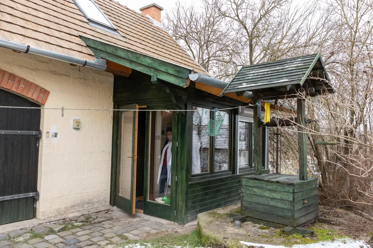 Nem a bejárattól balra eső főépületbe tartunk, hanem a kerten átvágva a kerekes kút mögötti házikóba. Ez a labor.