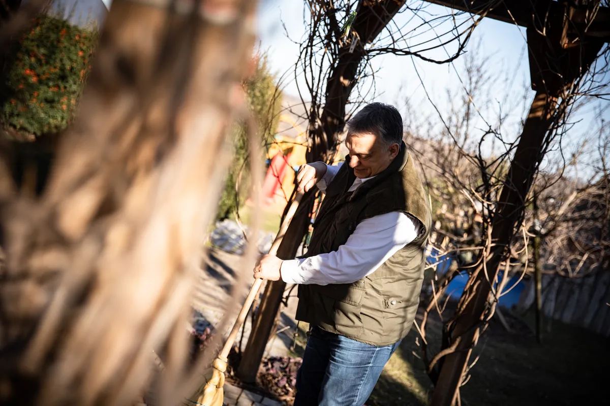 Miután a miniszterelnök is kitöltötte a kérdőívet, a hideg ellenére seprűt ragadott, hogy a kertben munkálkodjon egy kicsit.