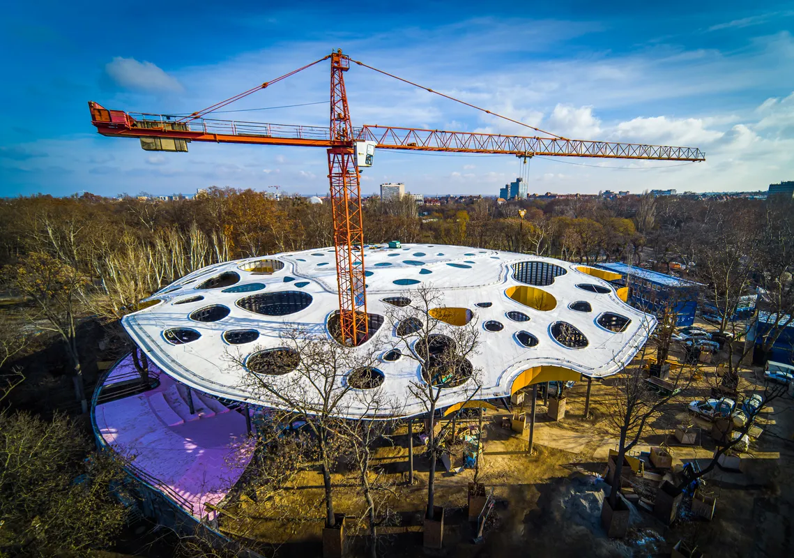 Bezárult az épület, már a Magyar Zene Háza belső tereinek kialakítása zajlik. A Hungexpo romos épületeinek helyén épült ház egyedi, organikus formavilágával Budapest egyik új ikonikus épülete lesz. A játékosan hullámzó tetőzet a városligeti lombkorona szintje alatt marad, így a ház harmonikusan illeszkedik a tájba. A Magyar Zene Háza 2019-ben nyerte el a Legjobb nemzetközi középület díját az International Property Awardson.