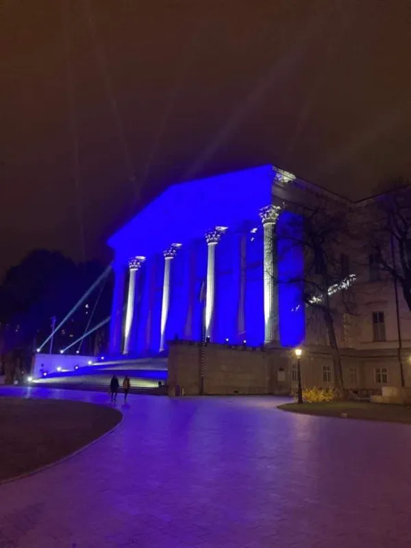 Megnéztük a Nemzeti Múzeum honlapját. Aznap a múzeum a görög szabadságharc kitörésének kétszázadik évfordulója előtt tisztelgett a kék fényárral.