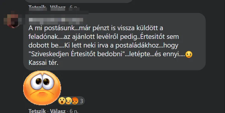„Lehet, hogy már akkor kisebb lenne a sor, ha a postás becsöngetne és az ajánlott levelet átadná annak, aki otthon van, nem csak a postaládába dobná be az értesítőt” – írta egy zuglói férfi az egyik Facebook-csoportban, miután kézbesítés helyett csak értesítőket kapott. Egy kommentelő a Kassai téren tapasztalta ugyanezt. Hiába írta ki a postaládára, hogy „Szíveskedjen az értesítőt bedobni”, a postás inkább letépte az üzenetet, ahelyett hogy átadta volna neki a levelet.