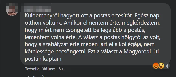 Volt, aki inkább megadta a telefonszámát vagy borravalóval próbálta rábírni a postást a feladata elvégzésére. Egy idő után aztán a lakók megelégelték a várakozást, a Mogyoródi úti postán egy kommentelő panaszaira az egyik ügyintéző pedig meglepő választ adott: azt mondta, a szabályzat szerint járt el a kollégája, nem kötelessége becsöngetni.