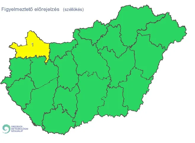 Napközben az Északi-középhegység magasabban fekvő területein viharos széllökések (60-70 km/h) is várhatók. Péntek éjfélig a délnyugati területeken 15-20 mm lehulló csapadékra kell számítani. A hőmérséklet maximuma általában 10 és 15 fok között valószínű – figyelmeztet az OMSZ.