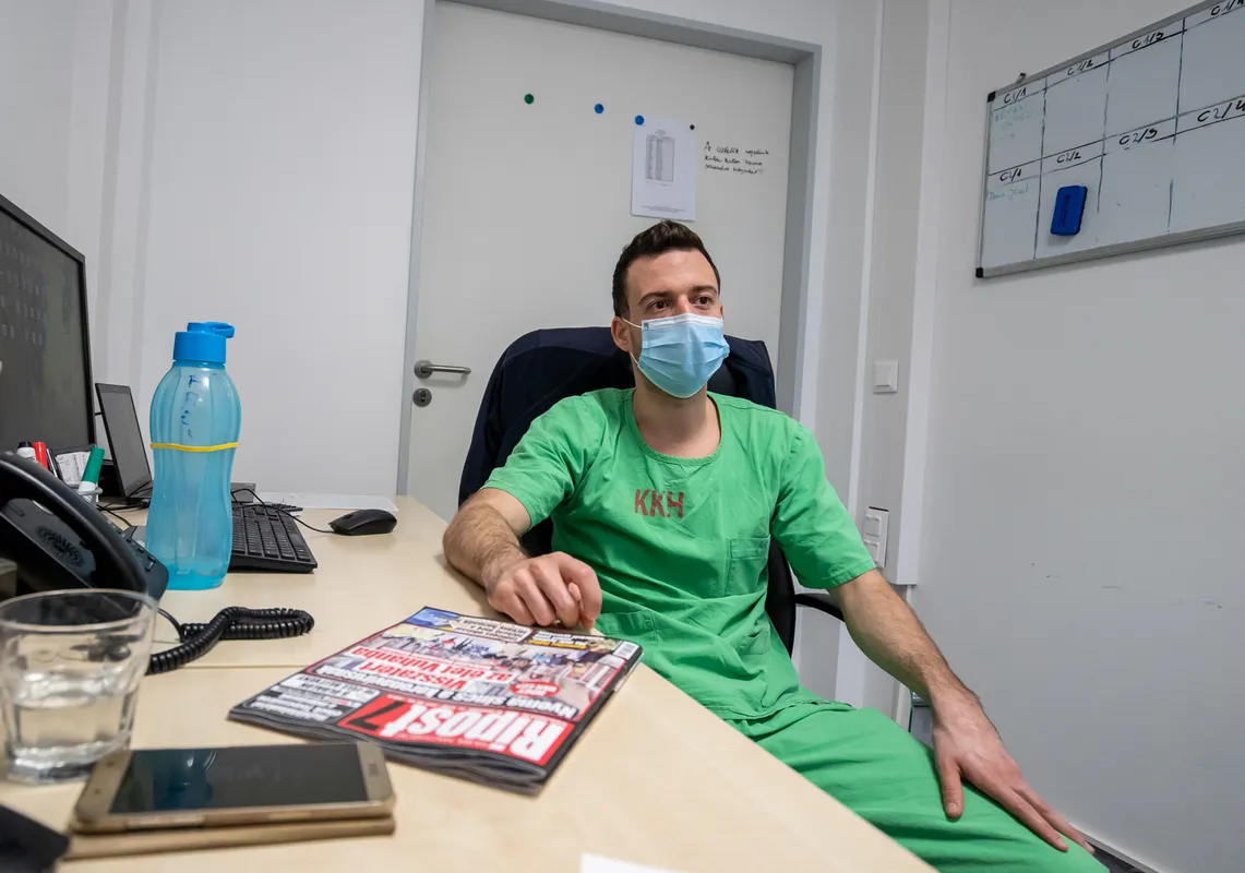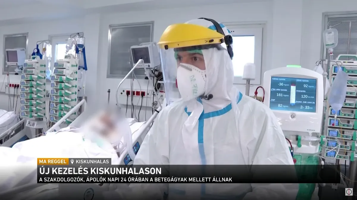Dr. Frei Norbert a vörös zónában. Az új módszerről az M1 közszolgálati csatorna számolt be elsőként. Fotó: MTVA- Az oltás életeket ment, ameddig véd, addig nem vagyunk életveszélynek kitéve, ezt kellene megérteni – hangsúlyozza dr. Frei Norbert. – Mindenki, aki bármelyik engedélyezett oltás ellen beszél, aki bárkit lebeszél az oltásról, emberéleteket veszélyeztet, ezért nagyon haragszom rájuk. Mi itt látjuk, mit kockáztat, aki nem oltatja be magát!