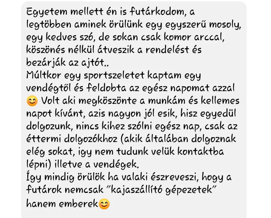 Segíteni akar a bajba jutott futárokon, ezért különleges meglepetéssel kedveskedik egy budapesti lány a kiszállítóknak.
