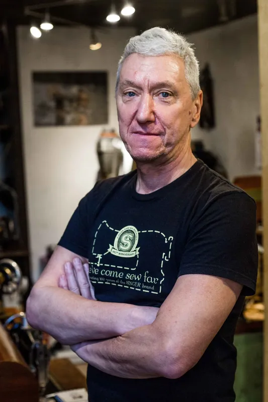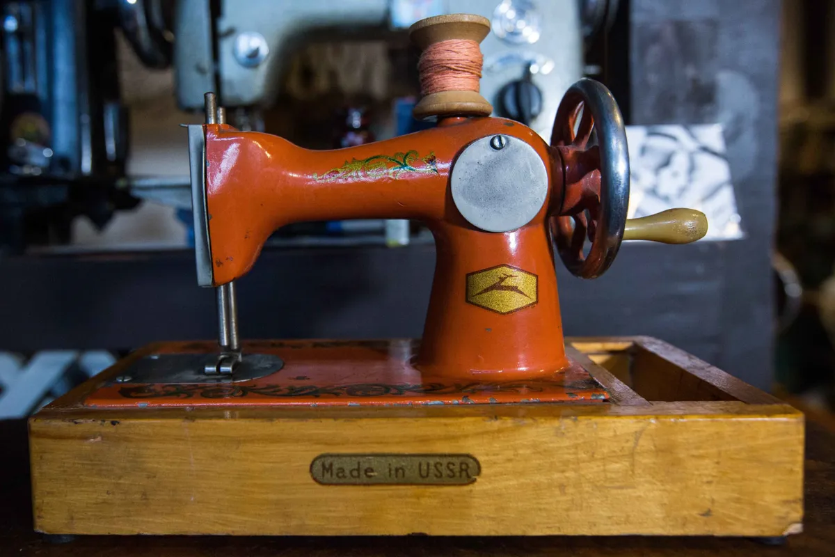 A Fő utcán végigsietve egyszer csak egy patinás, öreg varrógépbe botlunk a járdán – rajta aktuálisan egy maszk és egy tábla: Háztartási Varrógép Szerviz. Molnár Péter műhelyébe belépve egy másik világba, térbe és időbe kerül az ember.