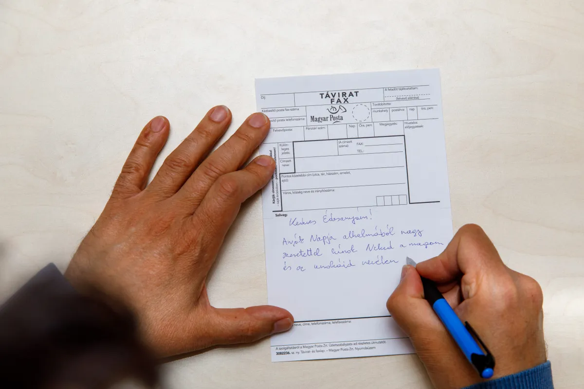 Az egyik utolsó távirati blankettát kollégánk töltötte ki édesanyjának címezve, a hétvégi anyák napjára. A kézzel töltött formanyomtatvány szövegét aztán számítógépes rendszerben továbbították. Egy dísztávirat egyébként 3-4 ezer forintba került.