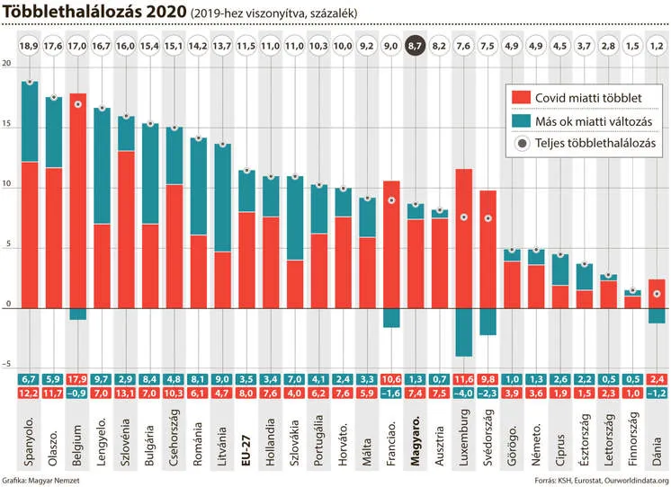 Grafikán cáfolja a baloldal állításait a Magyar Nemzet. Újra és újra címlapokon hozza a sajtó egy része, hogy Magyarország több mint 26 ezer áldozattal világelső a Covid-halálozásban. A hamis hírek miatt újra és újra el kell mondani, hogy ez – a rendelkezésre álló információk alapján – nem igaz. Az Eurostat objektívebb képet adó mutatóinak alapján Magyarország valójában az EU középmezőnyében helyezkedik el.