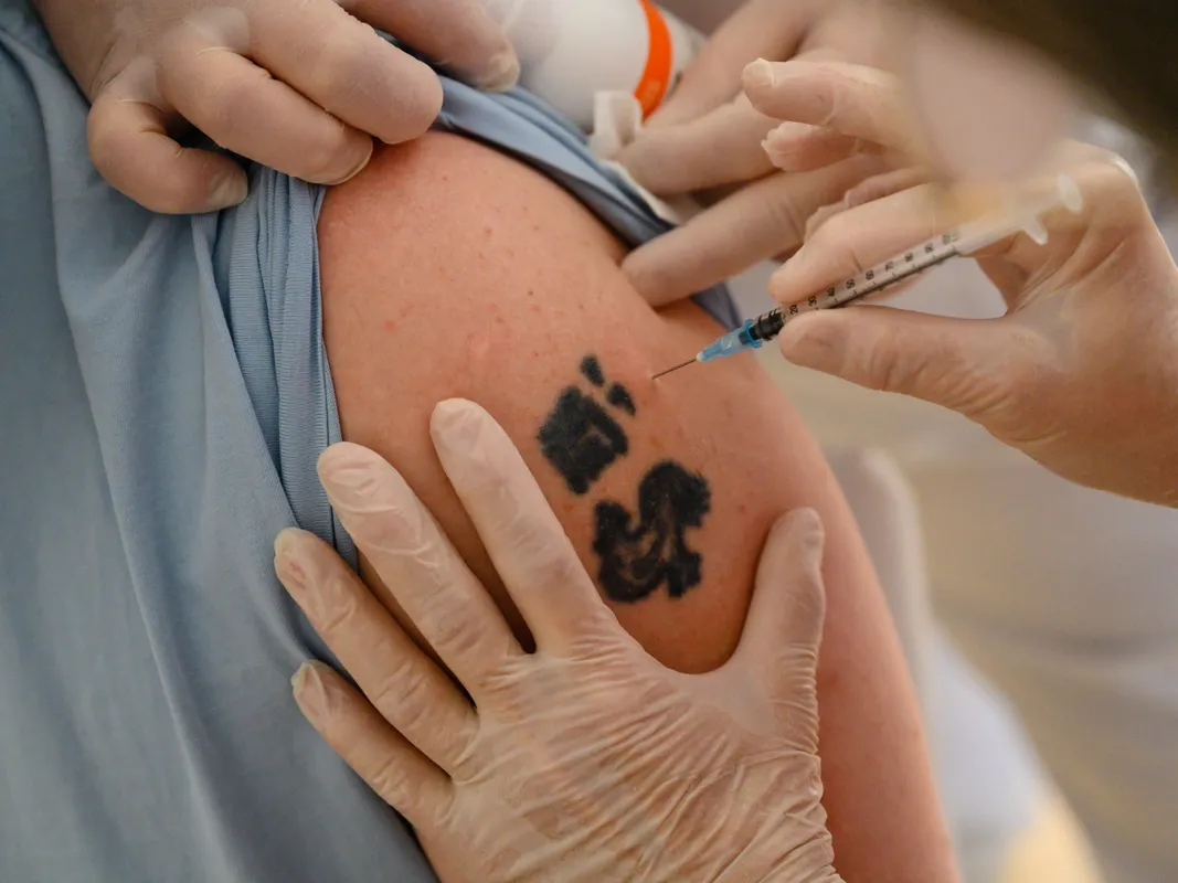 Egy férfit beoltanak az orosz Szputnyik V koronavírus elleni vakcina elsõ adagjával a veszprémi Csolnoky Ferenc Kórházban 2021. április 5-én.