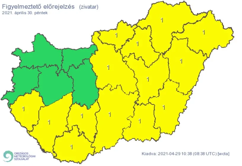 Az Országos Meteorológiai Szolgálat figyelmeztető előrejelzést adott ki zivatar miatt péntekre és szombatra.