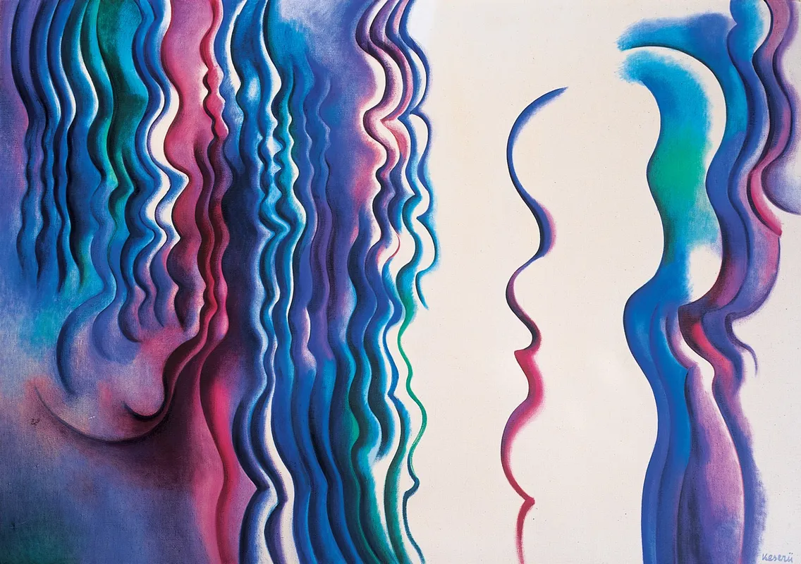 Keserü pályája elején többször előfordult, hogy ha éppen nem állt rendelkezésre üres festővászon, egy kész képét átfestette, akkor is, ha nagyon jónak találta az alapfestményt. A kép fő motívuma a természeti jelenségek által (szél, víz, növények) előidézett, vagy akár a véráramlás inspirálta, függőlegesre állított, mozgó-áramló, ritmikus hullámvonal, mely Keserü művészetének egy kedvelt, vissza-visszatérő alapeleme.