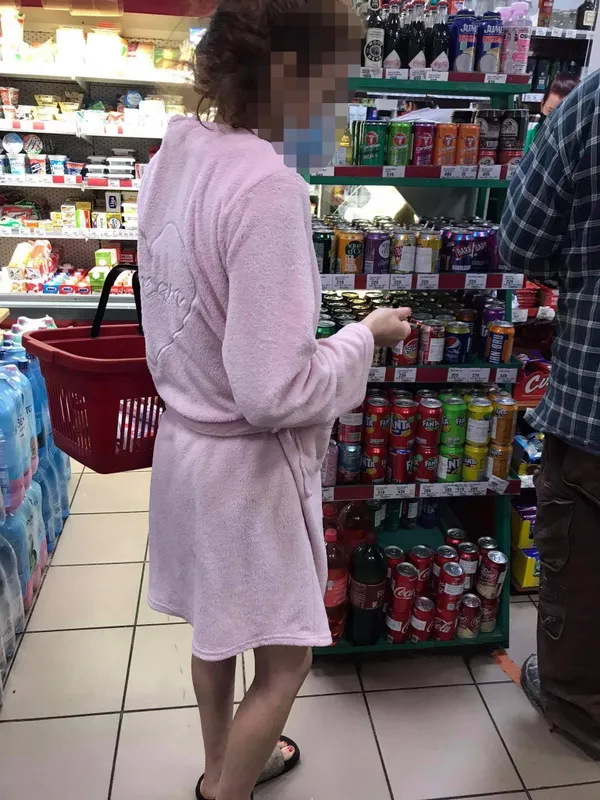 Nem hiszünk a szemünknek, egy nő fürdőköpenyben ment bevásárolni a budapesti kisboltba.