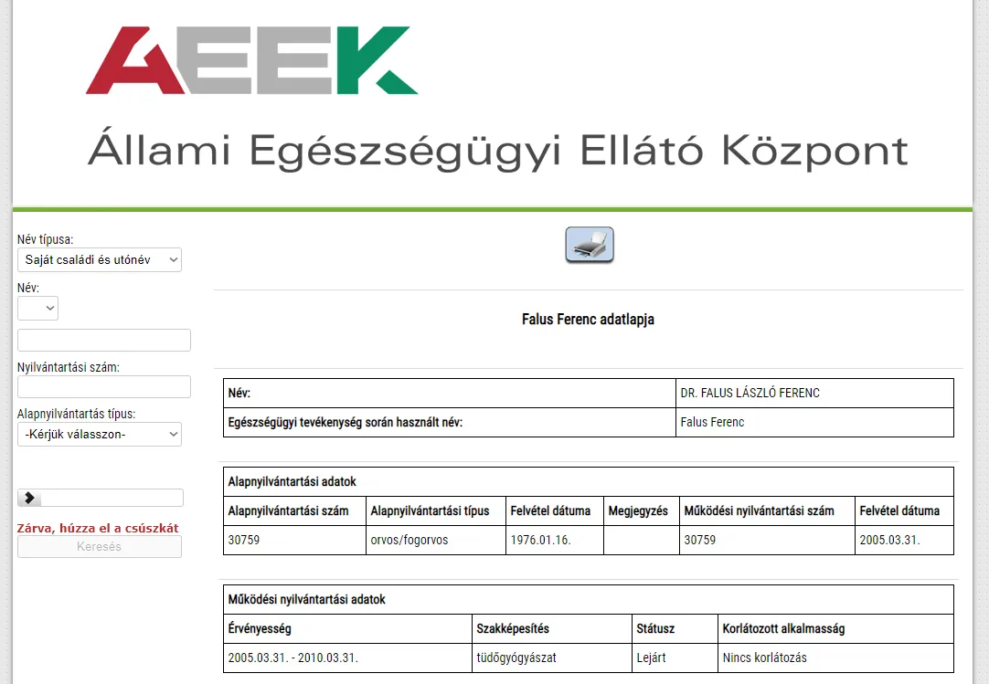 Több mint tíz éve, 2010 márciusában lejárt az orvosi működési engedélye, nem praktizálhat, betegek közelébe sem mehet az ellenzék megmondó embere, Falus Ferenc.