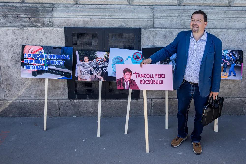 Huth Gergely szervező a szimbolikus helyszínen elmondta, hogy az akcióval a rendszerváltás utáni demokrácia legsötétebb napjának évfordulójára szerették volna felhívni a figyelmet.