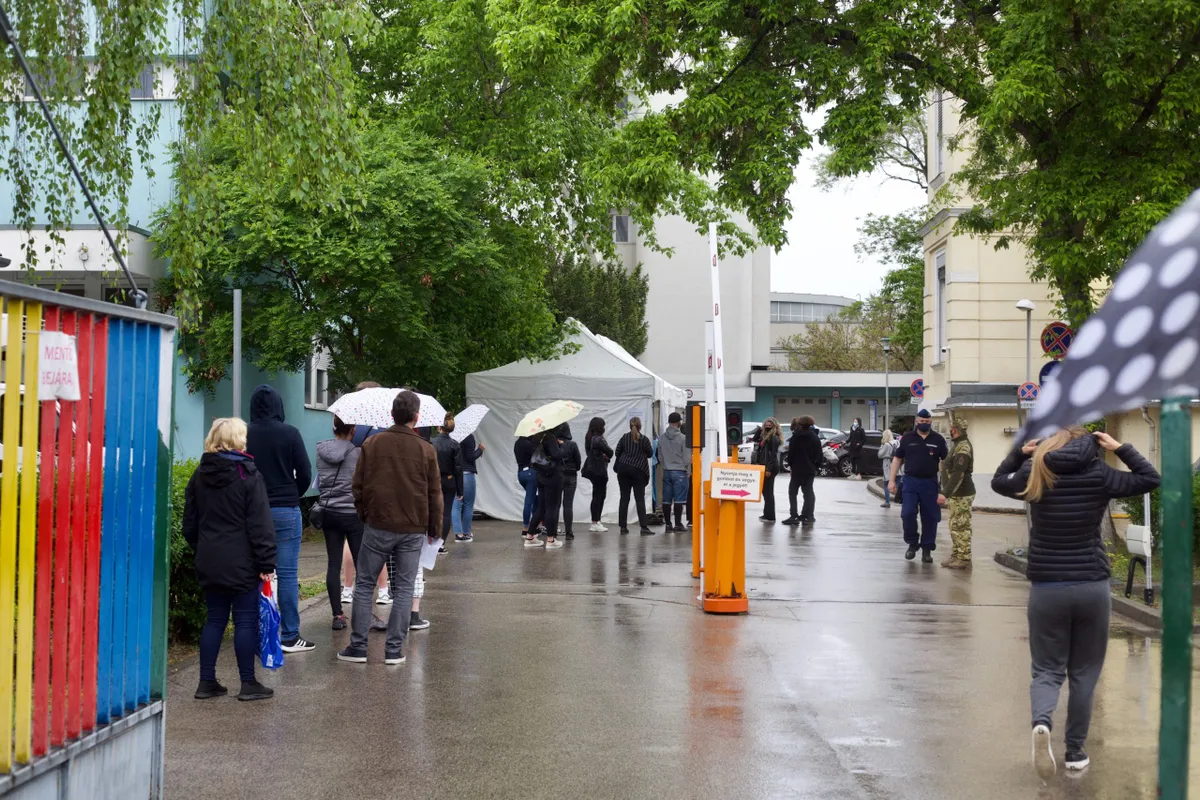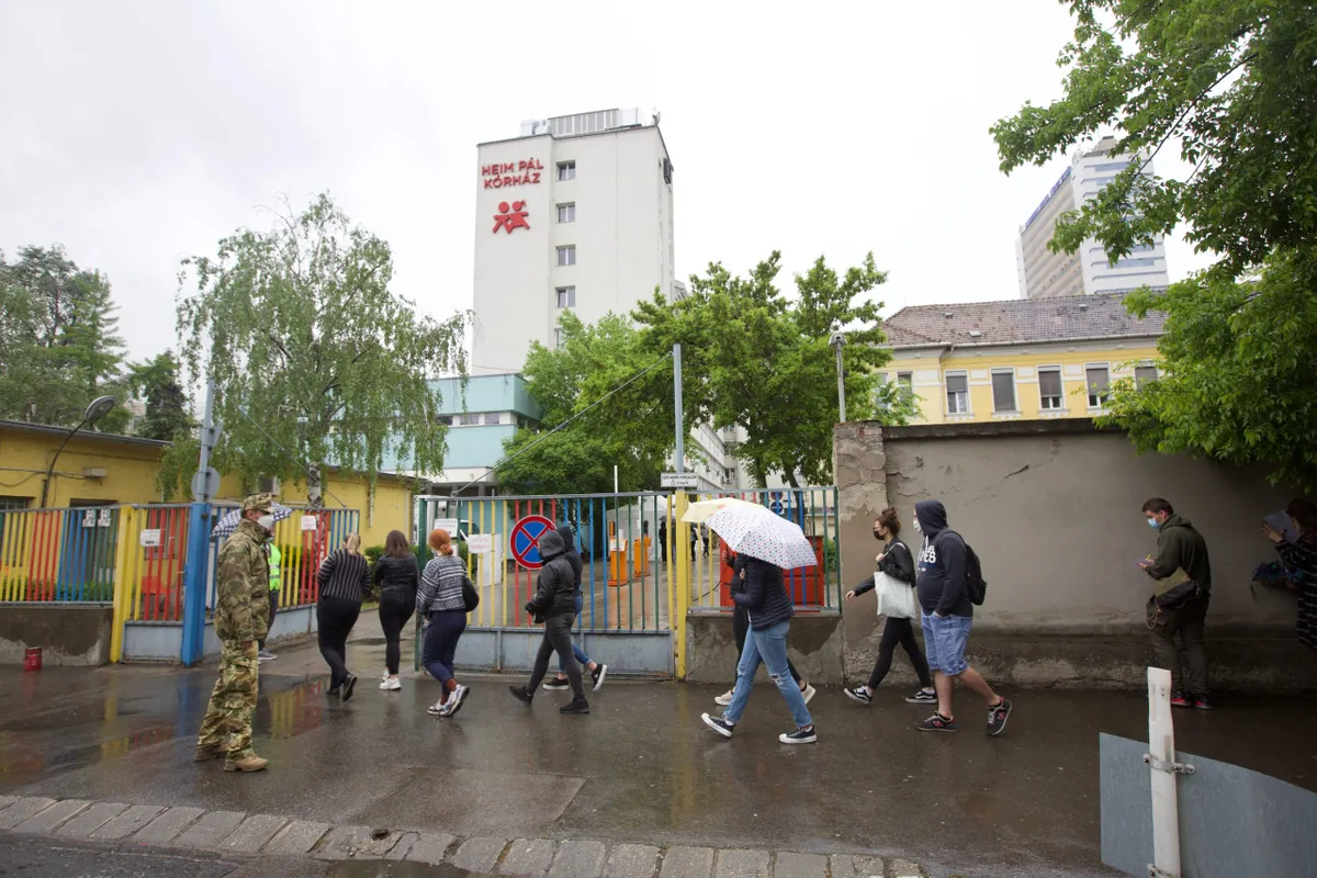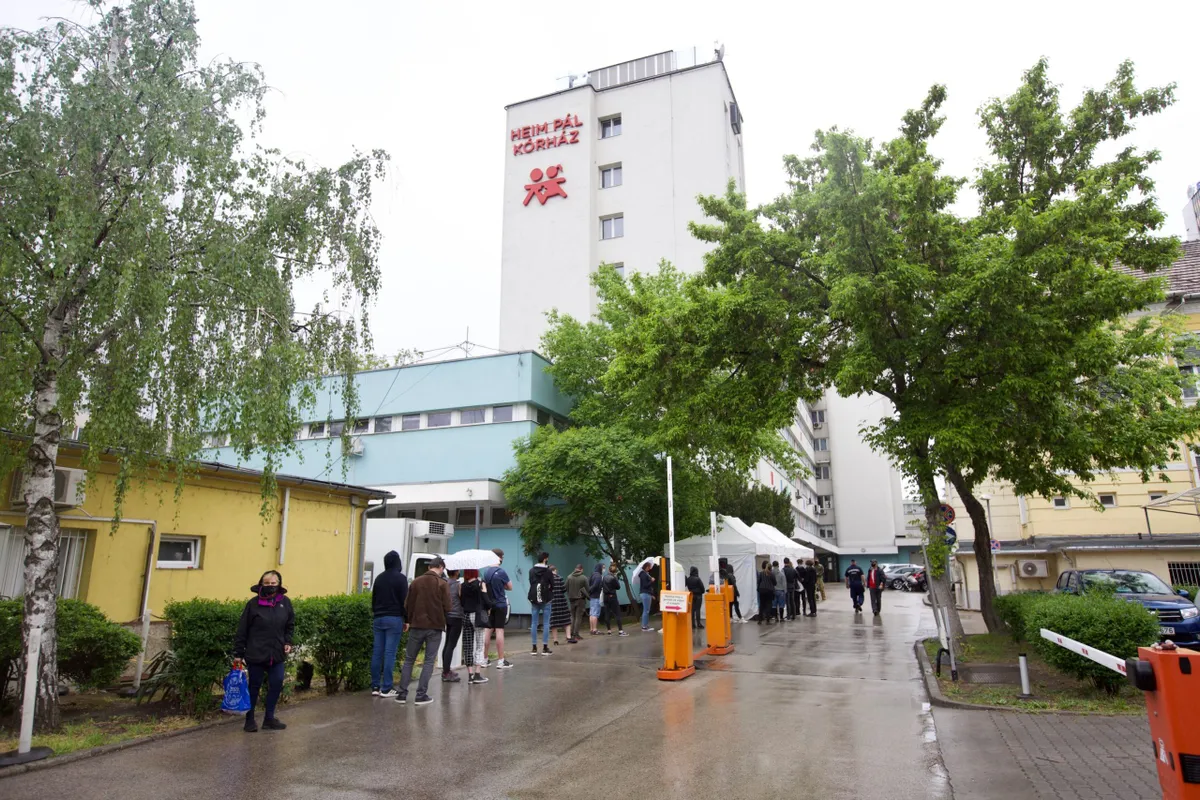 Íme néhány kép a Heim Pál Kórház előtt kialakult sorról: