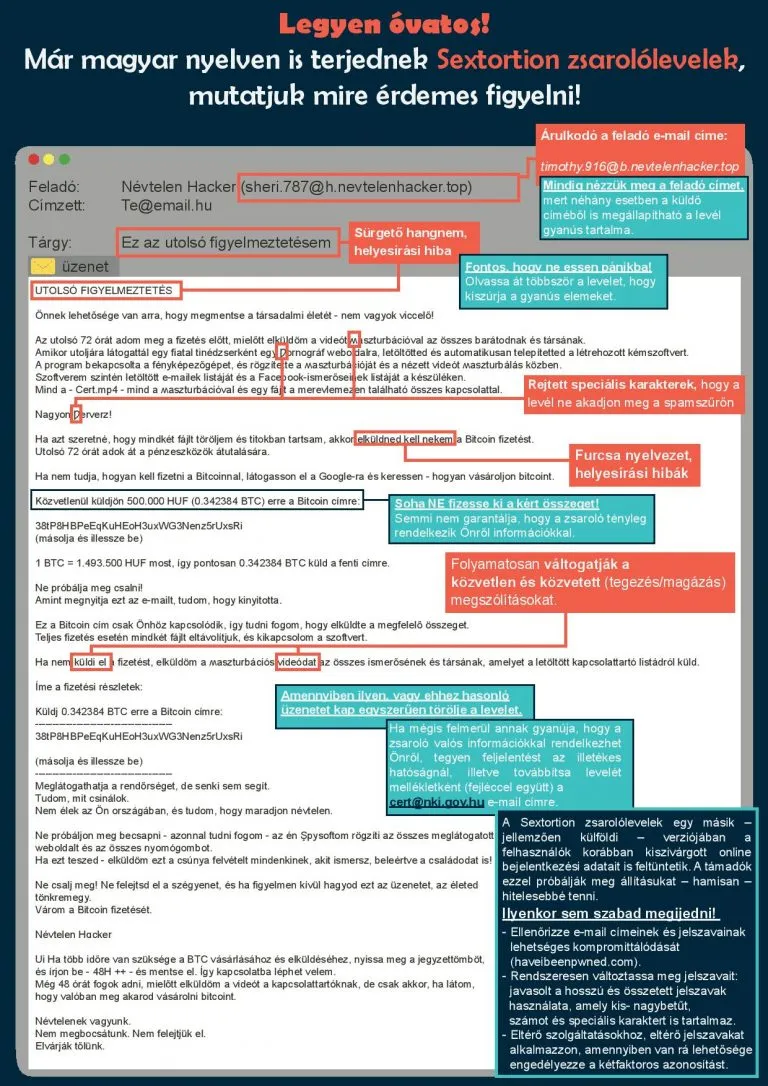 Az elmúlt napokban ismételten megnövekedett az olyan zsaroló hangvételű levelek száma, amelyek állami és önkormányzati szerveket, közintézményeket és magánszemélyeket céloznak. A magyar nyelvű e-mailek miatt riasztást adott ki a Nemzetbiztonsági Szakszolgálat Nemzeti Kibervédelmi Intézet.