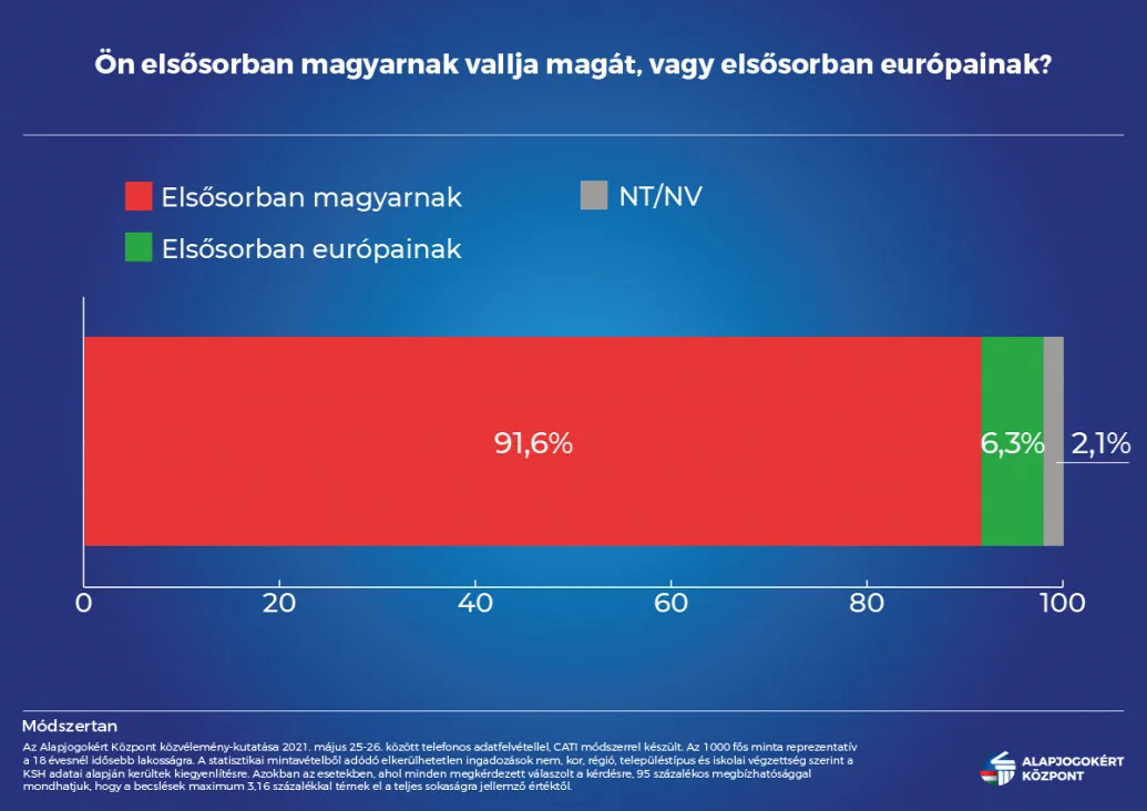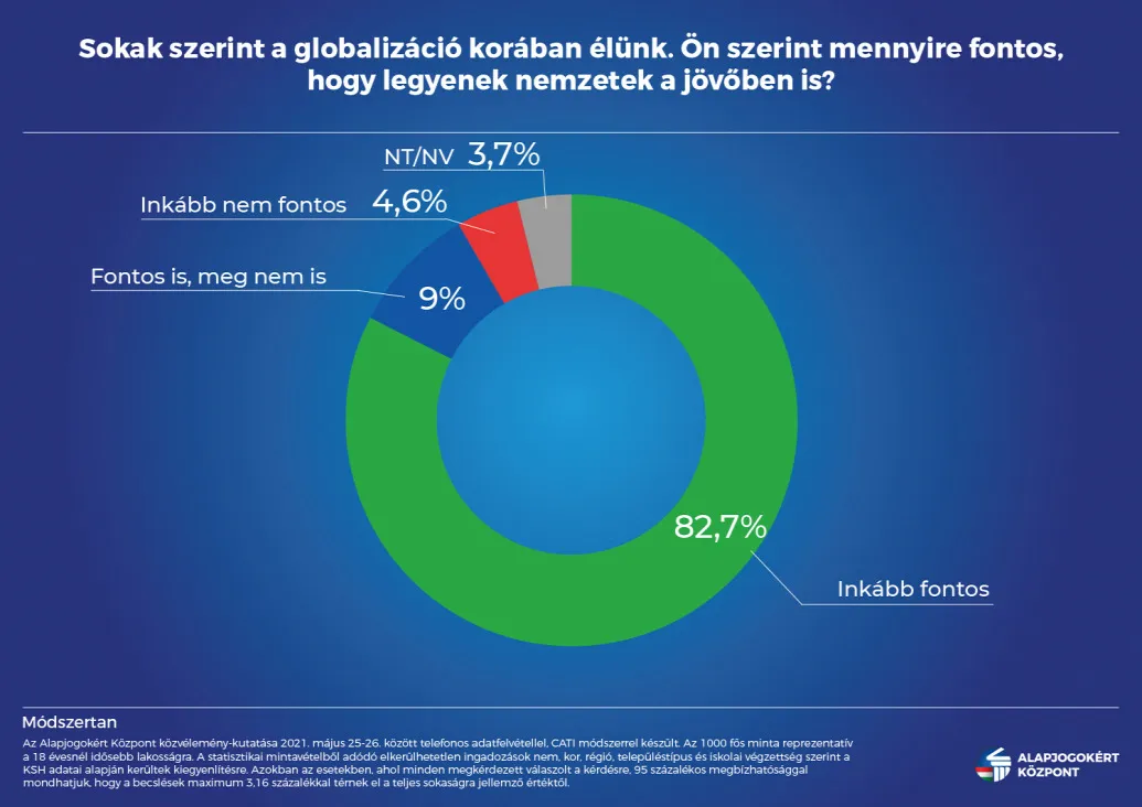 A magyarok 83 százaléka szerint fontos, hogy legyenek nemzetek a jövőben is, 92 százalékuk pedig elsősorban magyarnak vallja magát és nem európainak.