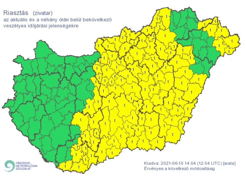 Az OMSZ riasztása szerint, az elsődleges veszélyforrást a villámlás jelenti, ami mellett esetenként szélerősödés, jégeső előfordulhat!