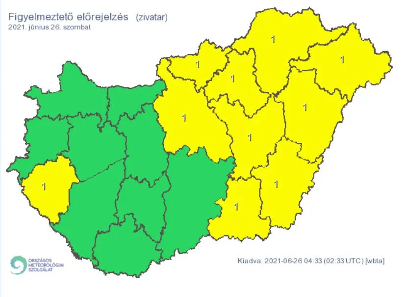 Szombat hajnalban és napközben is főként északon, északkeleten várhatóak újabb záporok, zivatarok, köztük egy-egy heves vihar is előfordulhat. Élénk, helyenként erős lesz az északi-északnyugati szél, de a zivatarokat is erős, viharos lökések kísérhetik. Mérséklődik a hőség, hajnalban 15-21, délután 25-32 fok között alakul a hőmérséklet.
