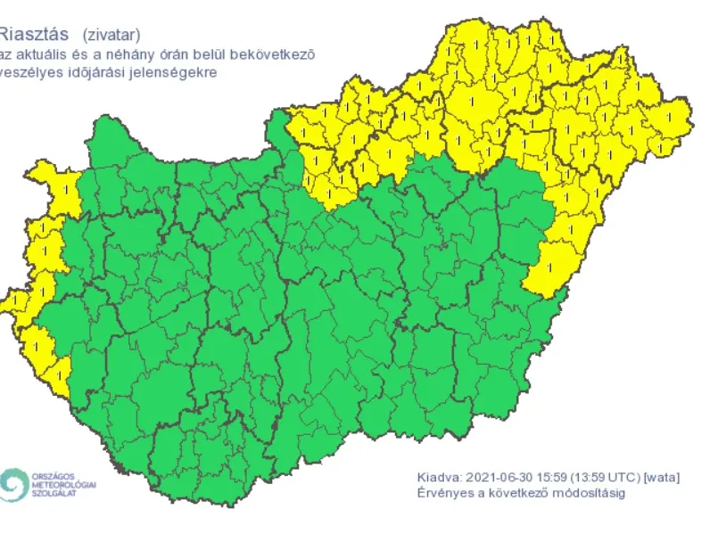 Az északkeleti országrészekre koncentrálódik a zivatartevékenység, emellett a nyugati, délnyugati határvidéken is előfordulhat dörgés, villámlás. Az erősebb zivatarcellákhoz továbbra is társulhat viharos (> 60-70 km/h) széllökés, jégeső, illetve intenzív csapadékhullás.