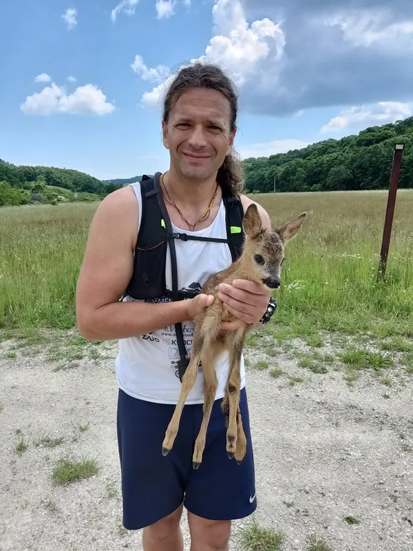 „Szeretnénk köszönetet mondani a képen látható fiatalembernek. Ma a 42 kilométeres maraton lefutása közben a várgesztesi erdőben talált rá erre a kis sérült őzikére. Az őzike megmentésére fordított időt, ami közel 4 órát vett igénybe. A fiatalember érdi és az ottani állatorvos doktornőn keresztül jutott el hozzánk. Első lépésben a doktornő hívott fel és így mentem érte Várgesztesre és vettem át az őzikét. Nyílt lábtörése van, ami nem friss és ezért tele volt nyüvekkel. Megkezdtük kezelését” – tudatta a Tappancs Állatotthon Alapítvány és Őrszolgálat a Facebook oldalán.