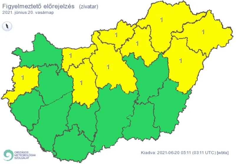 Szerdán napos, gomolyfelhős időre van kilátás, helyenként kialakulhat zápor, zivatar. Az északnyugati, nyugati szelet több helyen élénk, néhol erős, zivatar térségében átmenetileg viharos lökések is kísérhetik. A legalacsonyabb éjszakai hőmérséklet 16 és 23, a maximum-hőmérséklet 32 és 38 fok között valószínű, északnyugaton számíthatunk az alacsonyabb értékekre.