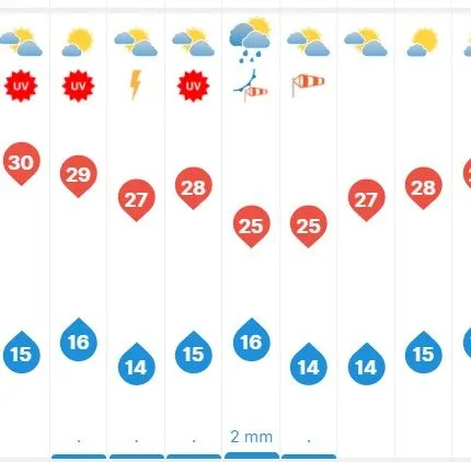 Szerdán napos, nyári időre készülhetünk. Zápor, zivatar csak néhol északkeleten, az Alföldön és a Dunántúli déli, délkeleti részén alakulhat ki. Többfelé élénk, néhol északnyugaton és zivatarok környékén erős lehet az északias szél. Hajnalban 10-18 fok várható. Délutánra 27 és 31 fok közé melegszik a levegő.