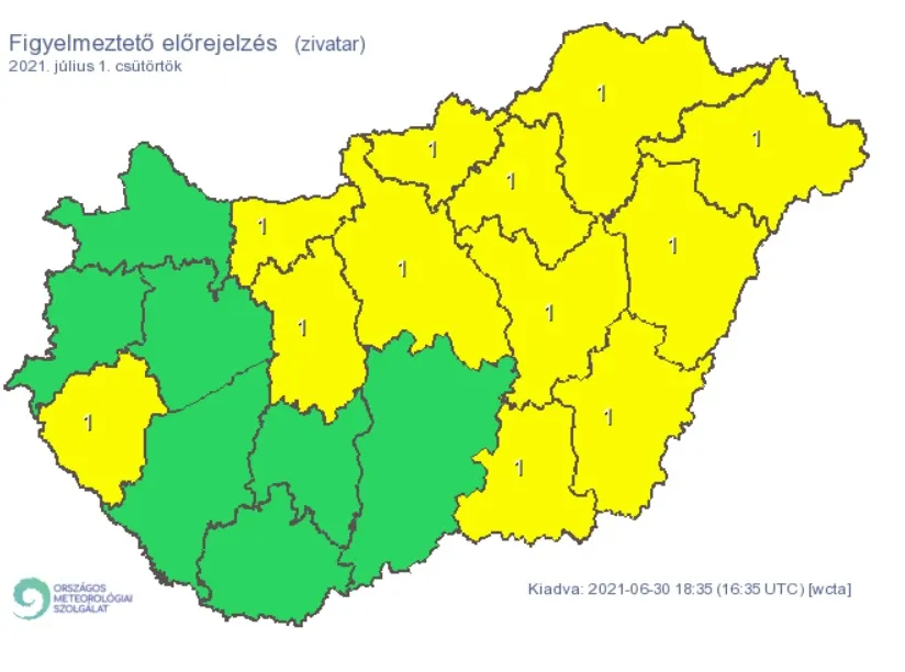 Az érintett megyék: Pest, Békés, Borsod-Abaúj-Zemplén, Csongrád-Csanád, Fejér, Hajdú-Bihar, Heves, Komárom-Esztergom, Nógrád, Szabolcs-Szatmár-Bereg, Jász-Nagykun-Szolnok és Zala megye. Az elsődleges veszélyforrást a villámlás jelenti, ami mellett esetenként szélerősödés, jégeső is előfordulhat!