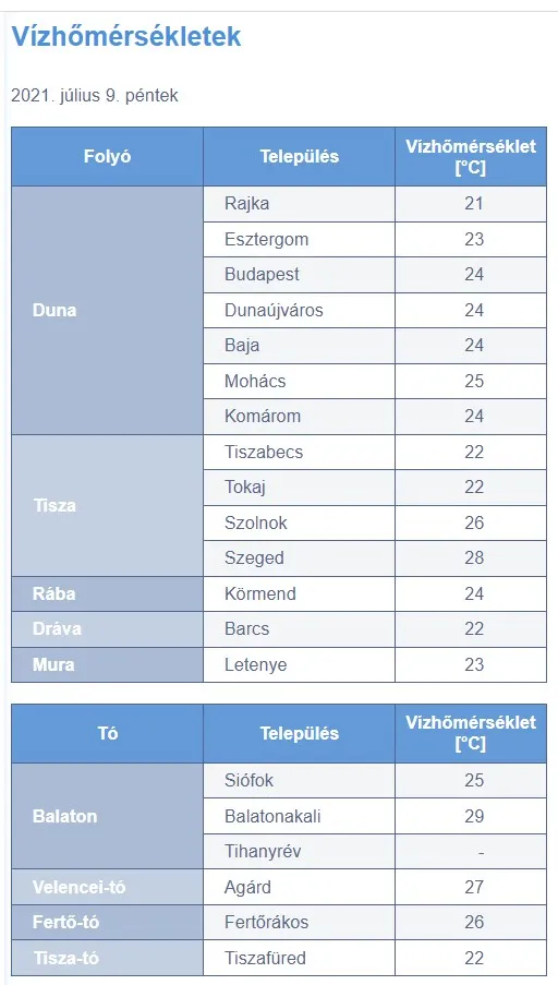 29, azaz huszonkilenc fokos a Balaton vize Balatonakalinál – írja az Országos Meteorológiai Szolgálat (OMSZ) 2021. július 9-ei jelentése.