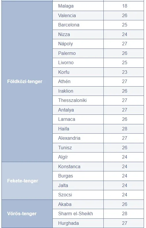 Hurghadánál „csak” 27, Sharm el-Sheiknél pedig „mindössze” 28 fokos vízhőmérsékletet regisztráltak.