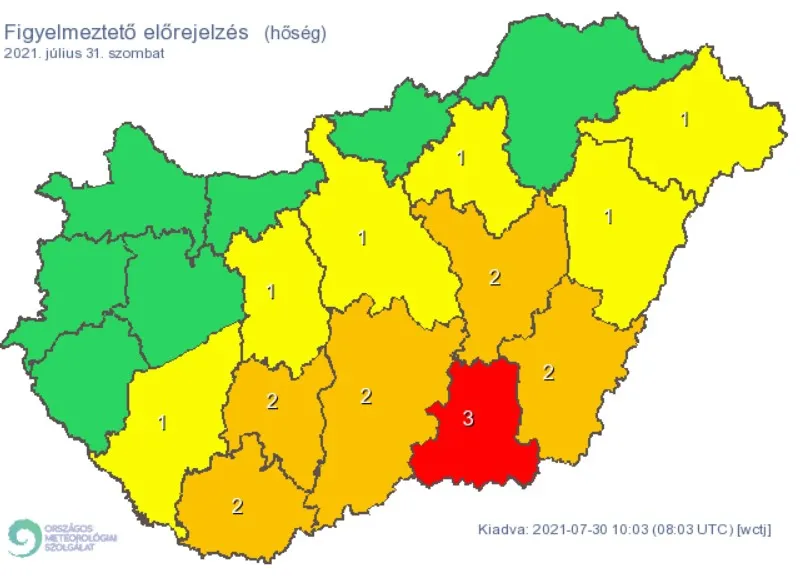 Északnyugat felől hullámzó hidegfront éri el hazánkat hétvégén, emiatt változékonyabbra fordul időjárásunk, többfelé záporok, zivatarok kialakulására is számítani kell. Szombat hajnalban először a Dunántúl északi felén, aztán a főváros környékén dörrenhet meg az ég, majd napközben ez a záporos, zivataros csapadékzóna kelet felé halad tovább, de mögötte újabb záporok, zivatarok alakulhatnak ki. Legkisebb eséllyel délen, délnyugaton fordulhatnak elő viharok, ugyanakkor az ország északi felén viszont hevesebb zivatarokra is számítani kell, melyeket felhőszakadás, jégeső és szélvihar kísérhet. A szél zivataroktól függetlenül is többfelé feltámad. Északon, északnyugaton 30 fok alatt marad a csúcshőmérséklet, ugyanakkor a Dél-Alföldön 36-37 fokot is mérhetünk.