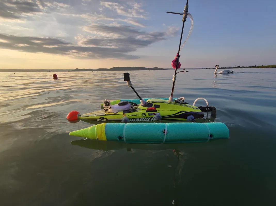„Valójában egy játék motorcsónakot alakítottunk át és szereltünk fel különféle érzékelőkkel. Az eredetileg 70 cm hosszú és érzékelők nélkül 1,5 kilós csónakot áprilisban bocsátottuk vízre a Balatonon. A mostani átalakítás után már a szélessége is nagyjából 70 cm, és egy picivel hosszabb is lett” – mondja a Ripost7-nek Nagy Gergely, az idokep.hu nemzetközi kapcsolatokért és kutatás-fejlesztésért felelős igazgatója.