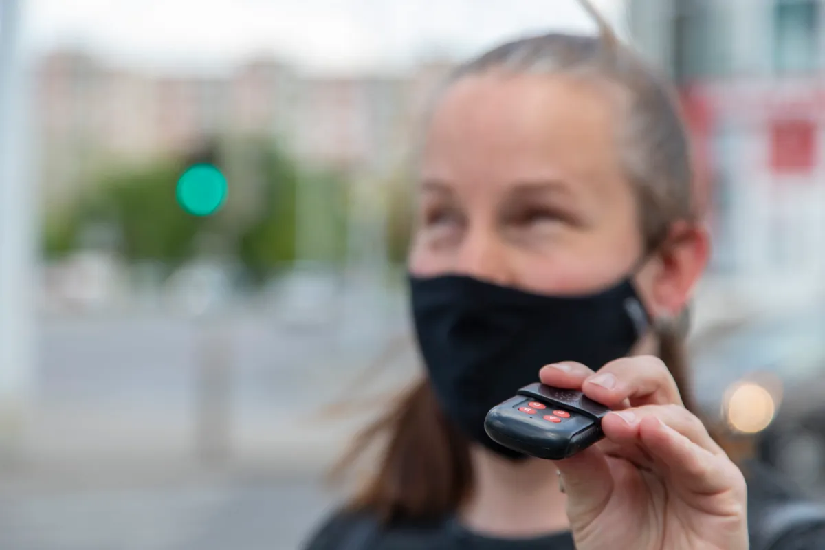 „Van egy bemondóm is: a kis távirányítón, ha megnyomom a gombot, aktiválja a lámpát, ami elmondja, hogy éppen zöld vagy piros. Sajnos ez még nem minden lámpánál működik, de nagyon hasznos tud lenni.”
