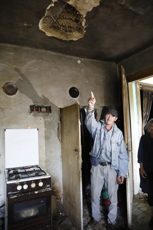 „Nézzék meg! Annyi eső érte a tetőnket, hogy több szobánkban is beszakadt a födém. A villanyt nem kapcsolhatták vissza, a víz sem folyik. Nem lehet itt többé élni! A napokban kijönnek a statikusok, hogy felmérjék az épület állapotát, de nem sok jót ígérnek. Egy élet munkája benne van ebben a házban, amit most biztosan le kell bontani. Még szerencse, hogy legalább a gyerekkoromból megmaradt családi képek megmenekültek!” – kesergett a férfi.