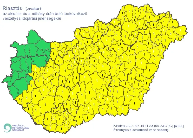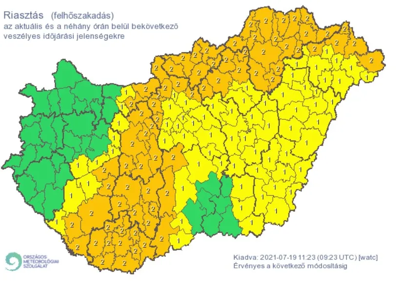 Felhőszakadás és zivatar veszélye miatt sokfelé továbbra is első- és másodfokú riasztás van érvényben, bármikor újra leszakadhat az ég!